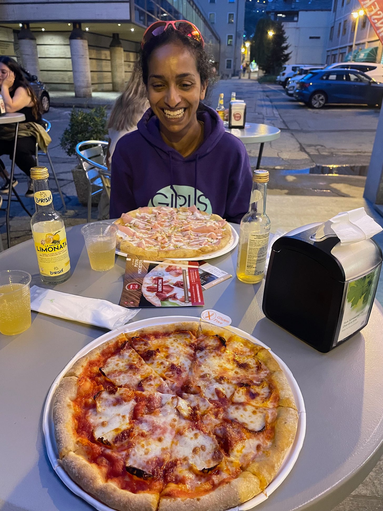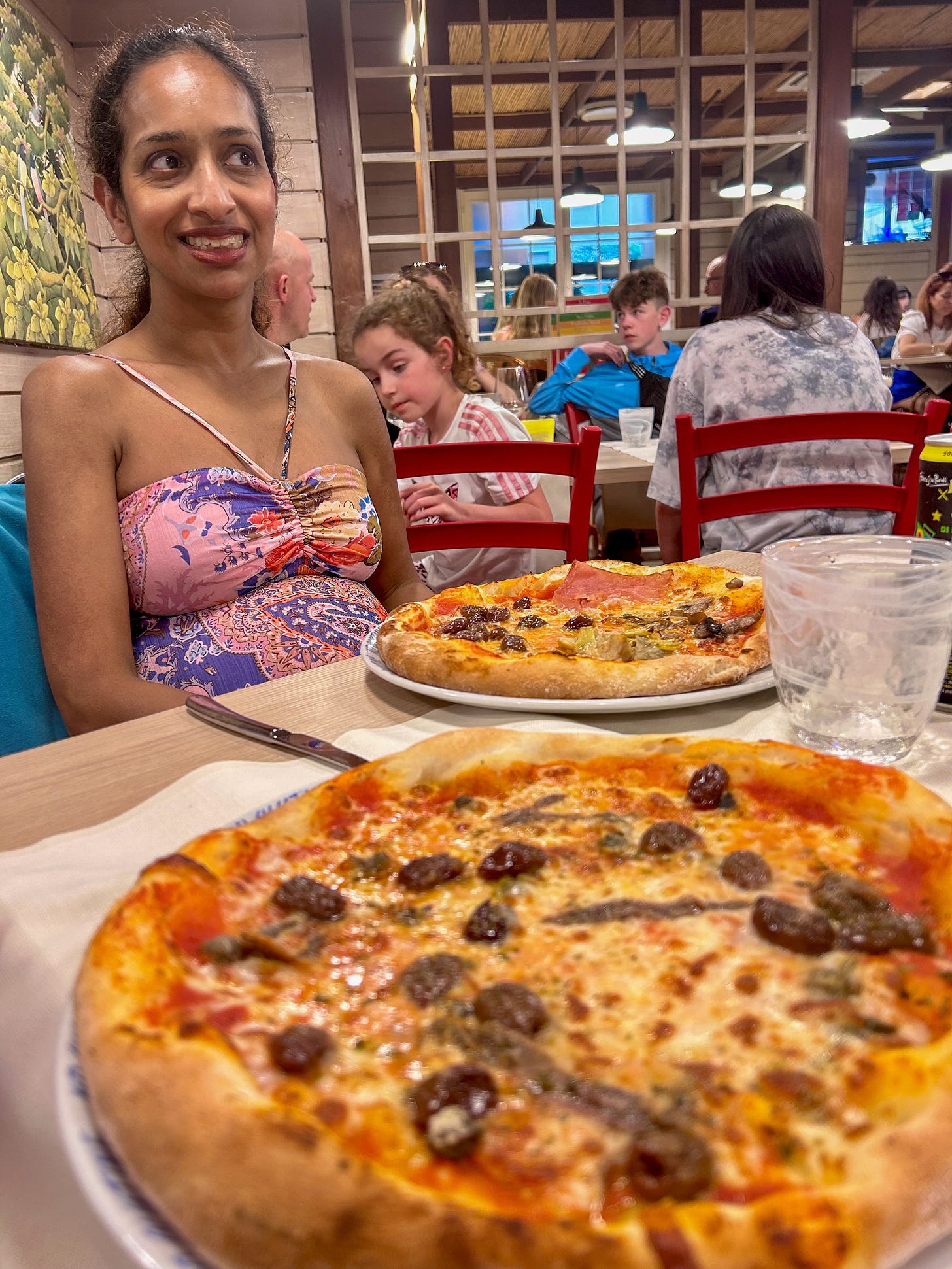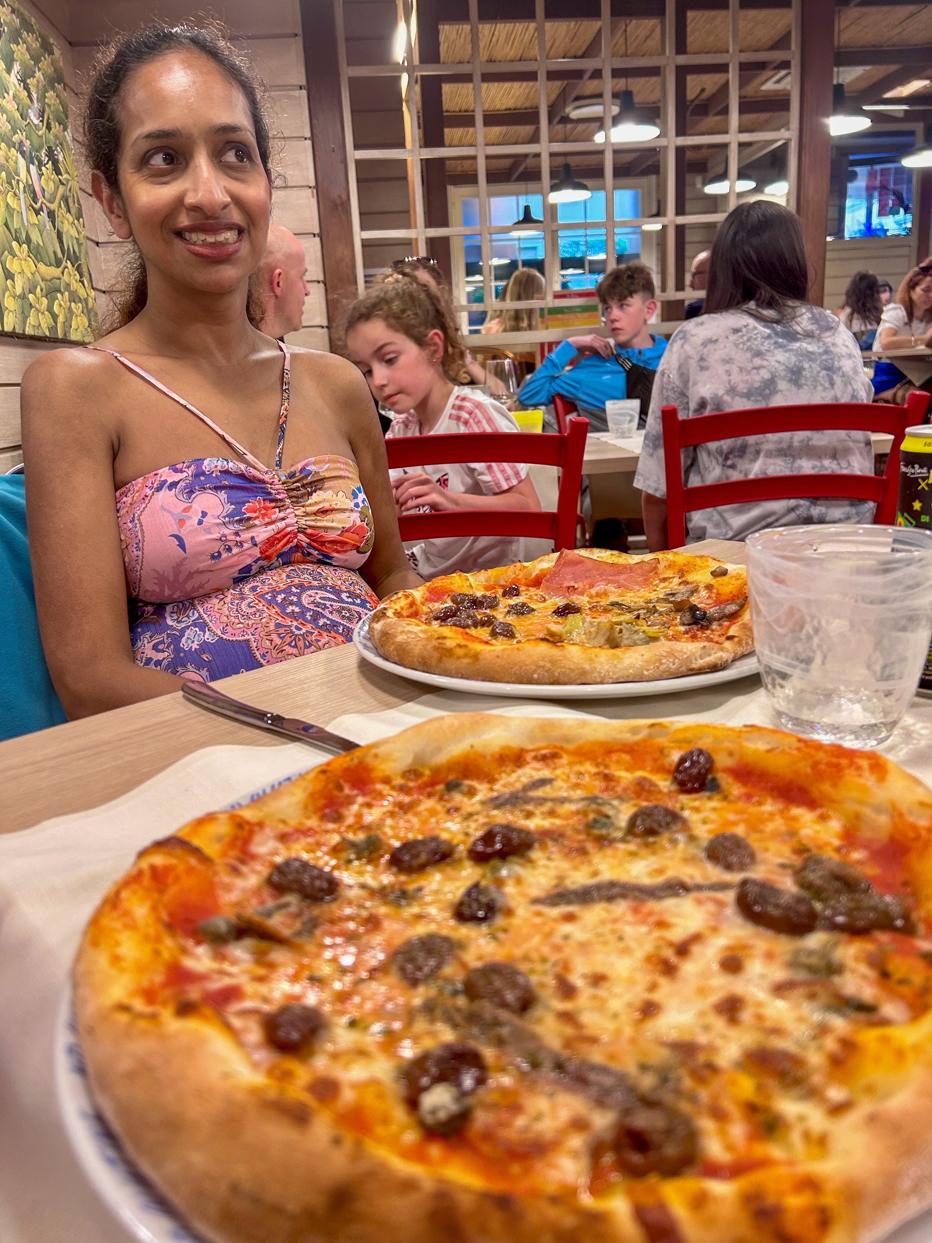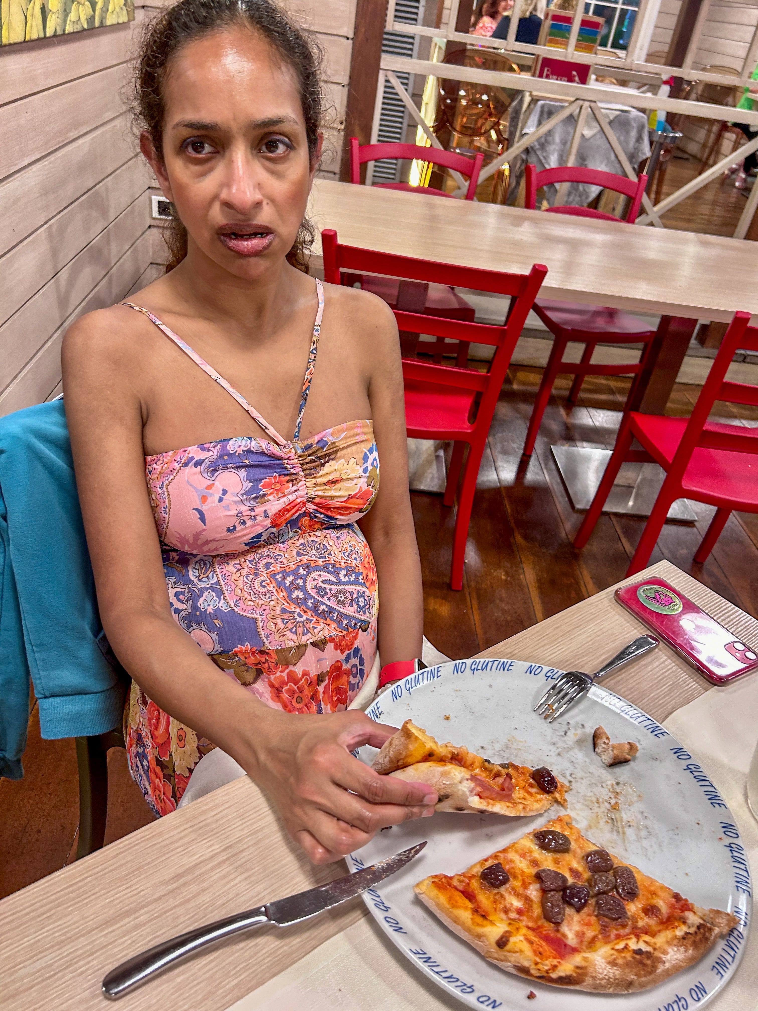 On our first night, we found a popular and busy restaurant that did GF pizza. The pizza was so large and cheesy that we both felt strange and trippy afterwards from eating it.