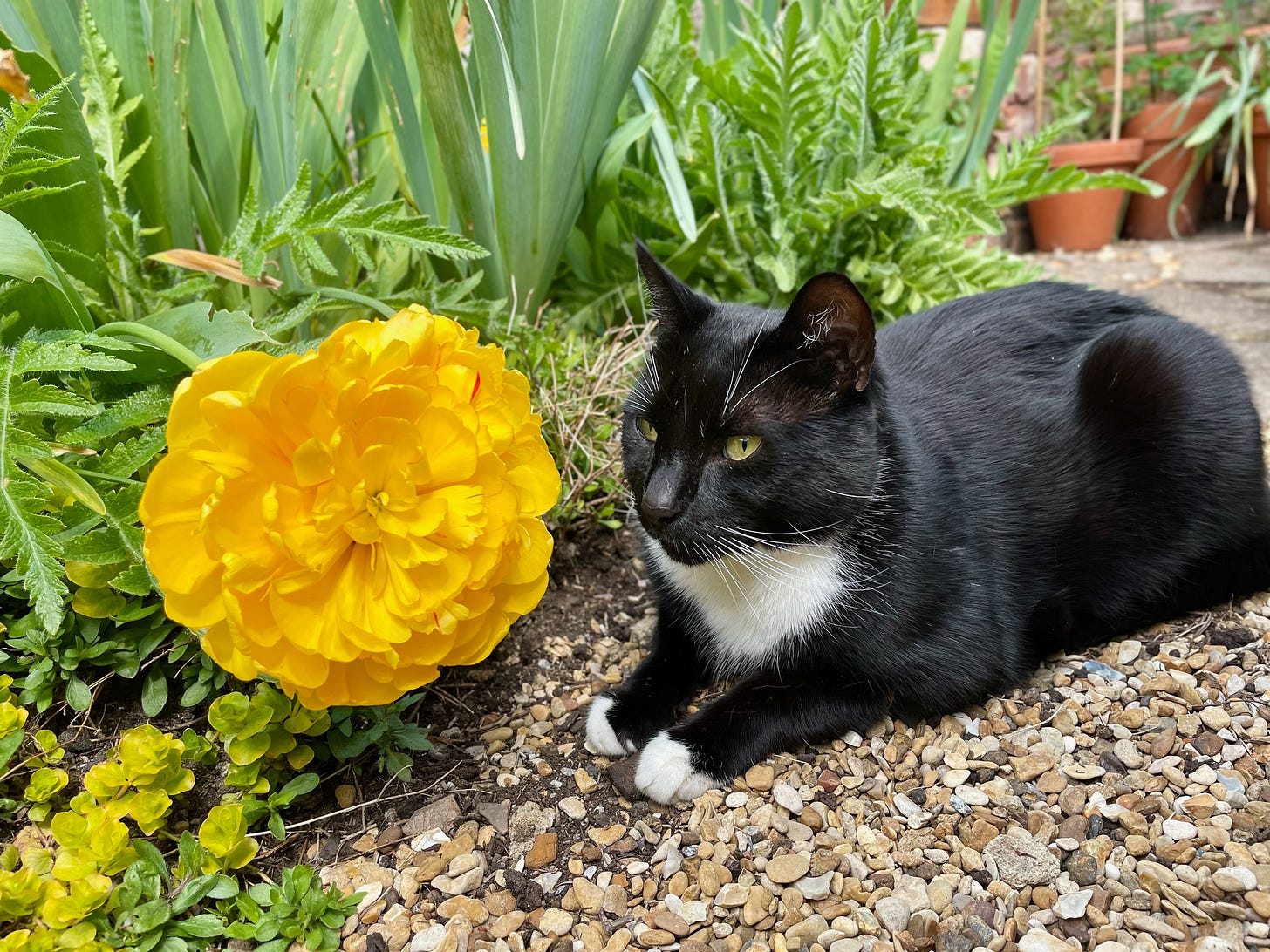Outside the neighbourhood cats silently thanked me and went about establishing a new world cat order. Humpty and Garfi seemed much happier, lounging about in the garden, carefree.