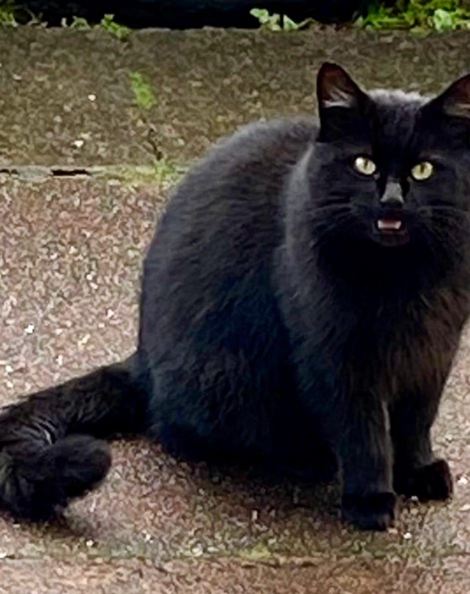 The metal trap worked first time. As I held the cage the huge tom cat was full of anger. I struggled up the garden stairs and out to the car. Garfi The Cat came out to mock him.