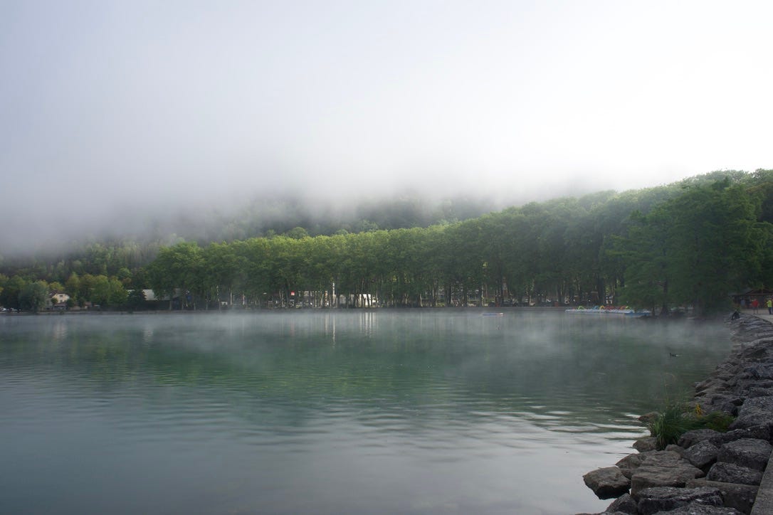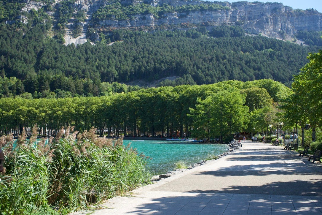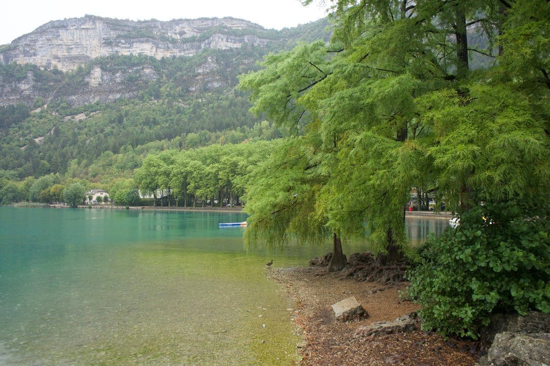 I drove on and was kind of startled to come across the most beautiful lake I had ever seen. This was Nantua where Stage 20 started on Saturday. I drove down to the town.